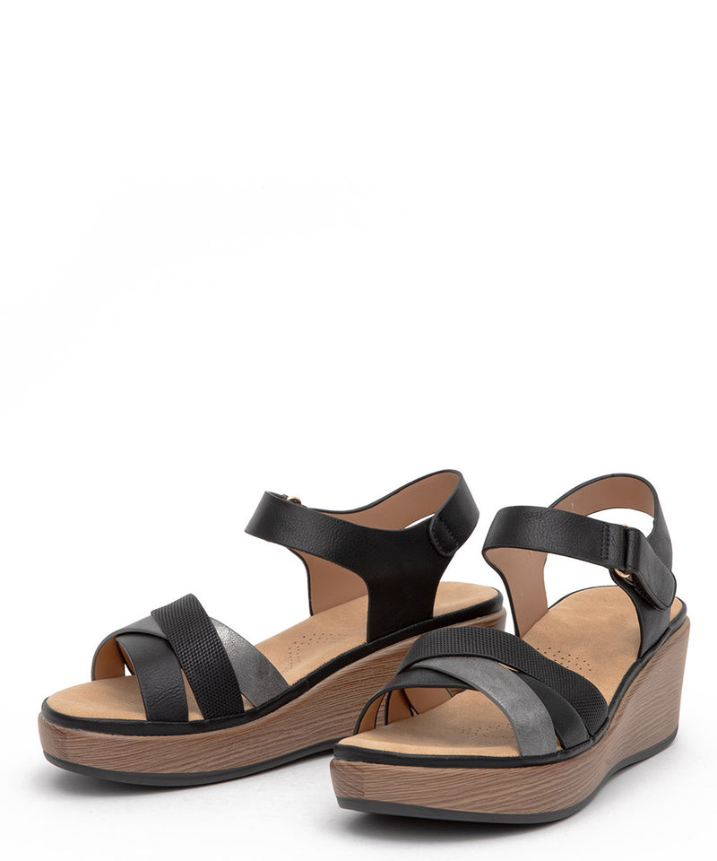 Sandalia Confort Mujer Premium Terraplen Cuña BK